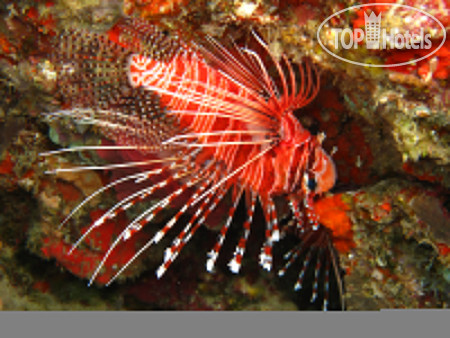 За каждым номером в отеле закреплены лежаки. Наши стояли на пляже через дорожку. Поплескаться в воде можно практически вокруг всего острова до волнорезов, в прилив воды побольше, в отлив соответственно помельче, плавать не получится, но приятно просто посидеть в теплой воде, коралки обязательны. Есть и специальная зона пляжа, которая расположена около дайвинг центра. Зона небольшая, но в именно этой зоне глубина всегда достаточна для полноценного плавания. Самая красота начинается за волнорезами – риф с живыми кораллами и множеством разноцветных рыбок.