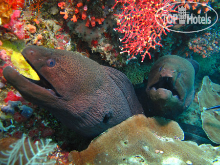 Морскую фауну (скатов, черепах, мурен, крупных тунцов, и другие виды рыб) можно увидеть на домашнем рифе, поплавать с рифовыми акулами (конкретно в 5-6 p.m.). Лагуна небольшая, отделена волнорезами. Отсутствие сильных волн для не умеющих плавать (как я) тут максимально комфортно. Для всех остальных-океан за волнорезами, Welcome.